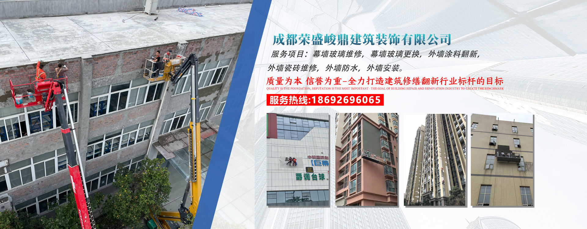 成都榮盛峻鼎建筑裝飾有限公司始終堅持發(fā)揚工匠精神的專業(yè)施工團隊,專業(yè)于舊建筑修繕翻新的研究與實踐;服務包括外墻維修、外墻翻新、外墻磚維修、外墻防水處理、內外墻涂料維修、幕墻玻璃維修、門...